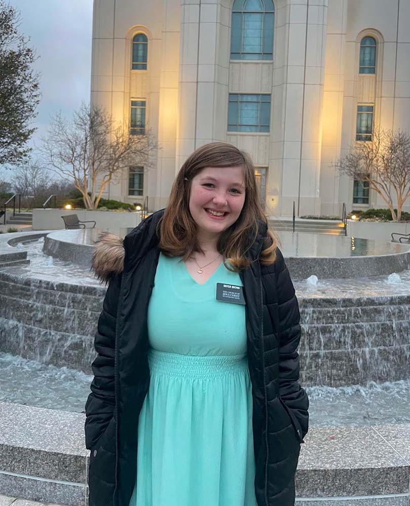 Brown said “her decision to serve a mission was not her decision.” She had prayed and received the answer that it was “God’s plan for her.” And that by serving she was “keeping the law of consecration.” It was taking “an immense amount of faith” for her to serve a mission. She also said, “Serving the Savior is the entire purpose of going on a mission because when I am serving others, I am serving Jesus Christ.”