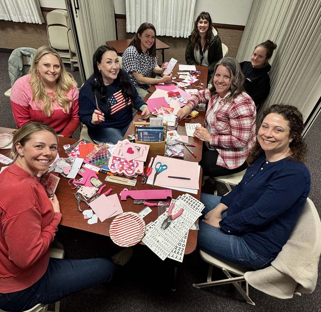 Relief Society members met to make Valentine’s Day cards for the community, donating them to Meals on Wheels. The group found the activity on JustServe.org
